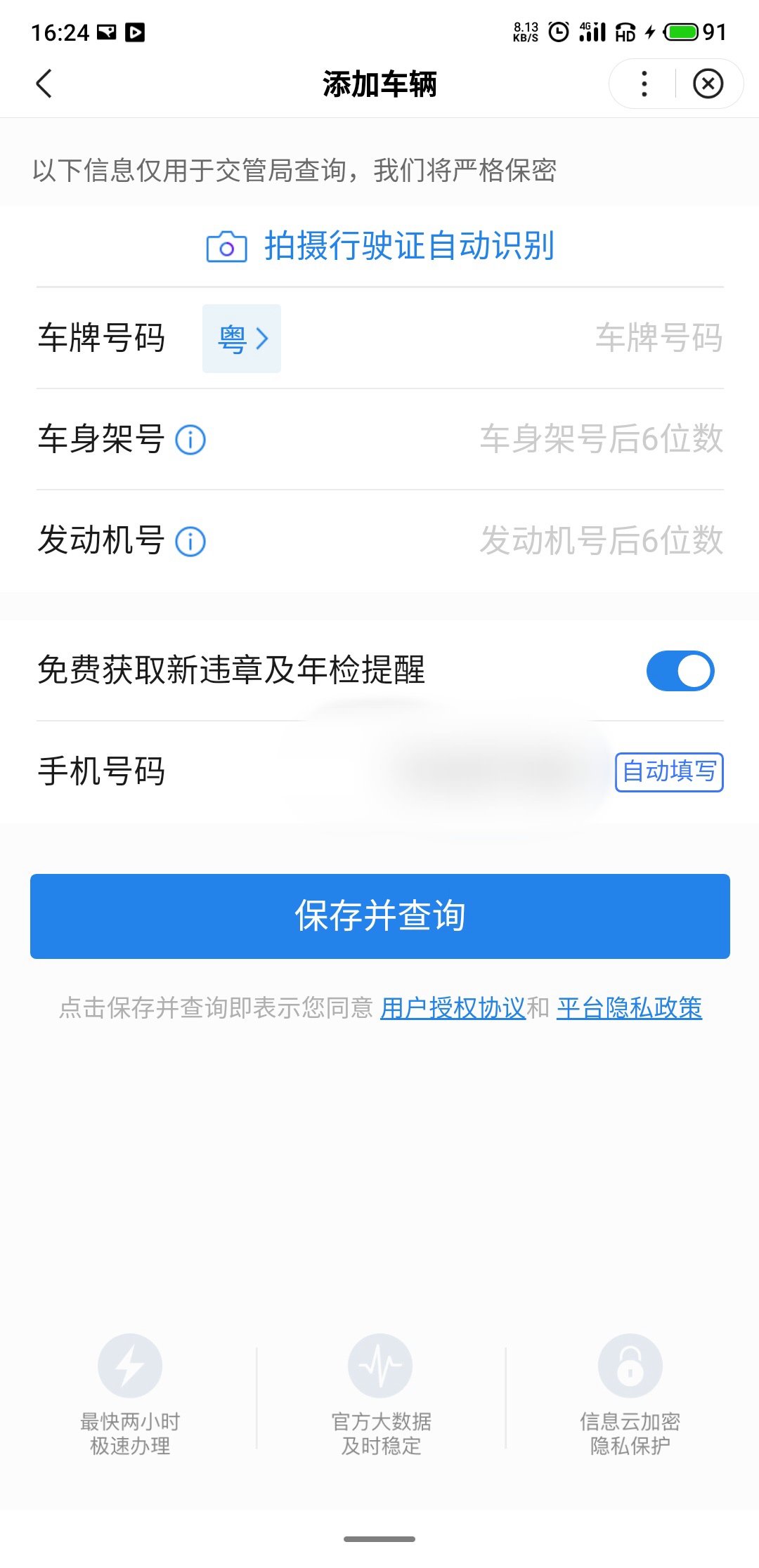 第三步:输入车辆的相关信息,然后根据系统提示完成后面的申请流程