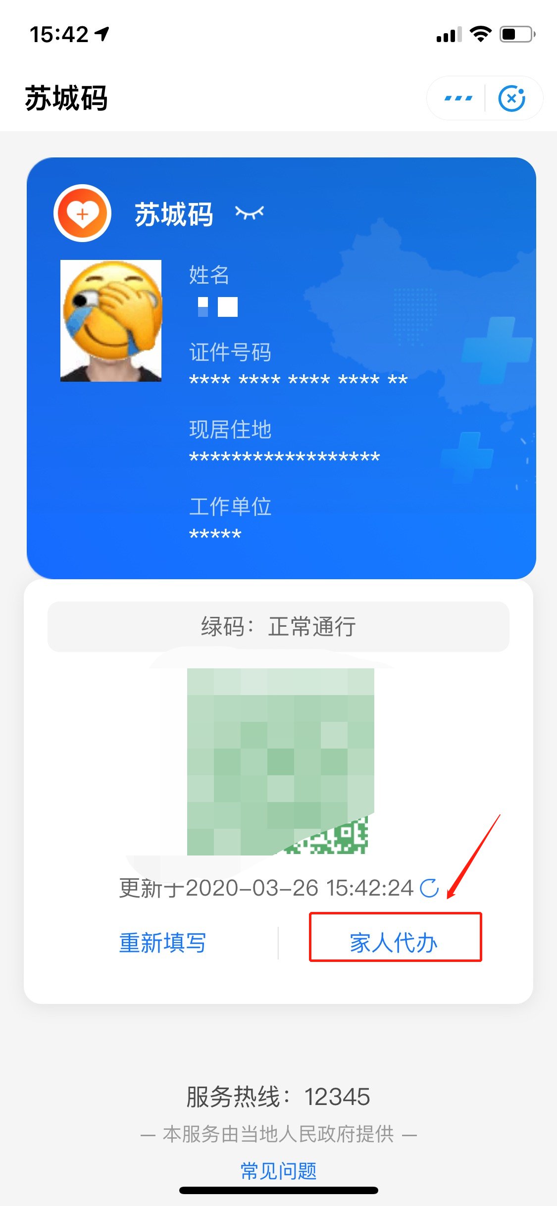 2.申请绿码后,在自己的苏城码下方点击家人代办。
