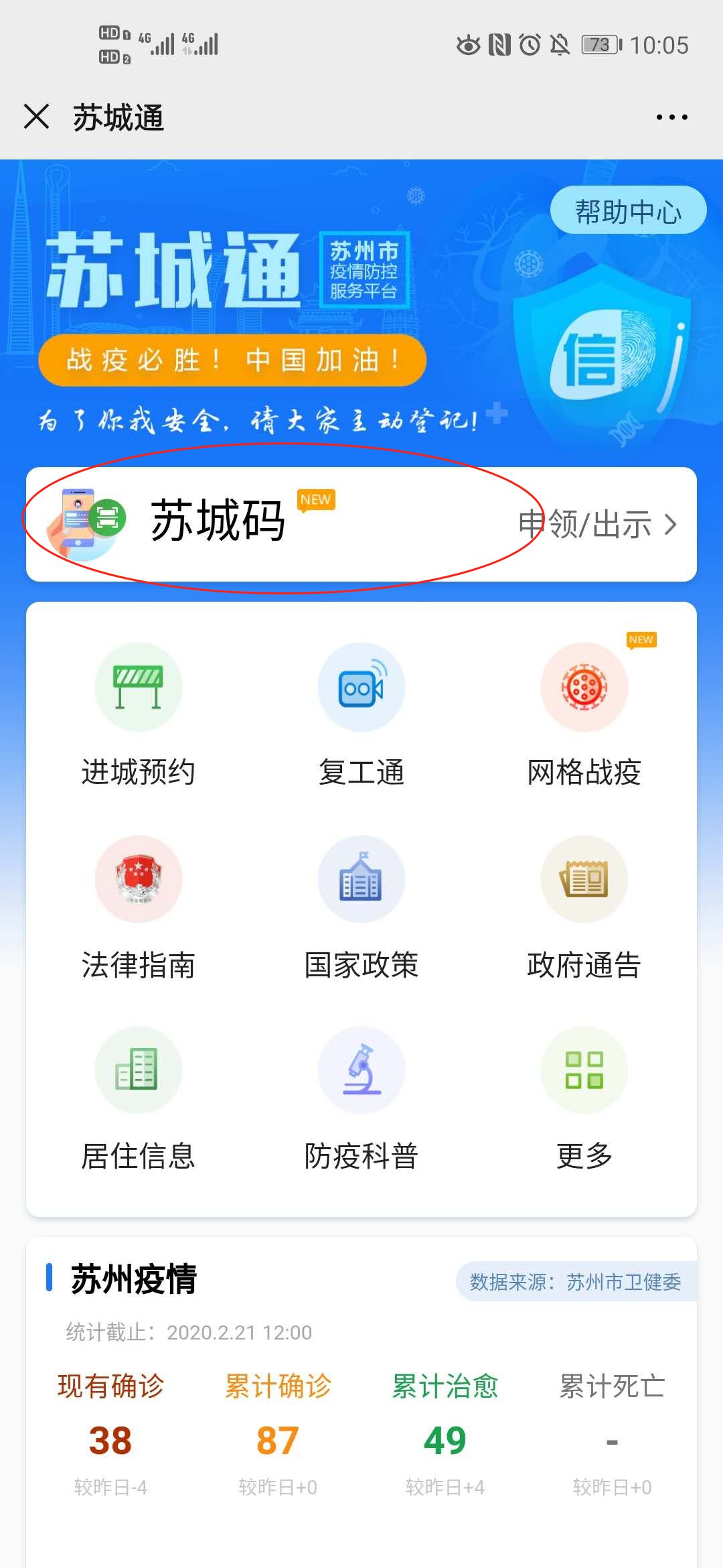 2、选择城市“苏州”,点击“苏城码”即可查看