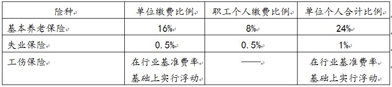 失业保险:单位缴费比例0.5%;职工个人缴费比例0.5%;单位个人合计比例1%。