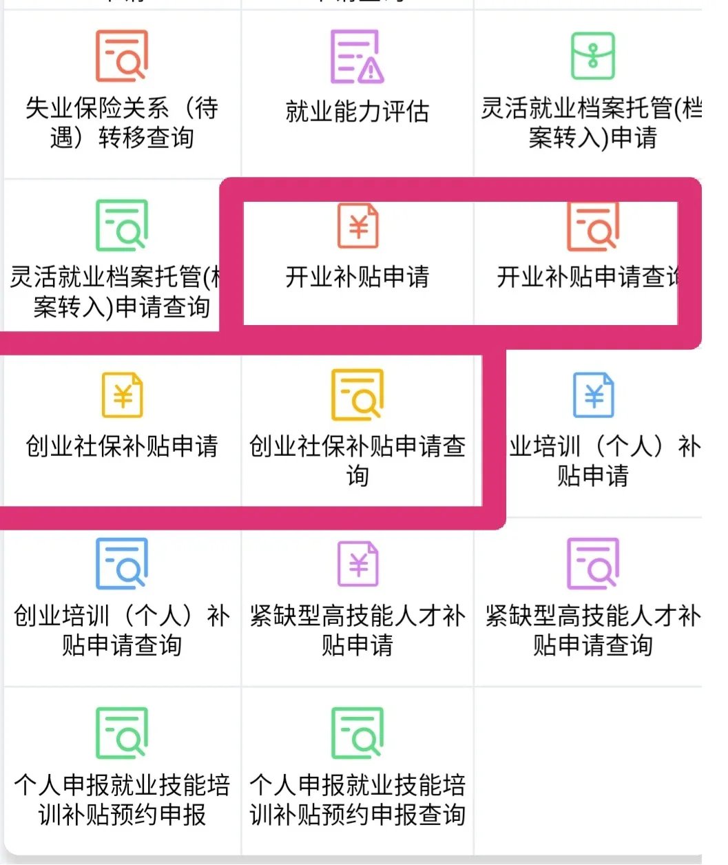 第二步:选择就业创业中的开业补贴申请,可办理开业补贴、选择创业社保补贴申请,可办理创业社保补贴。