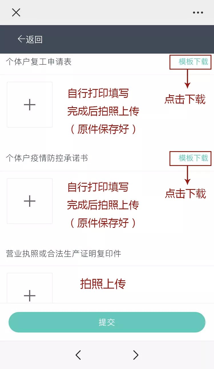 各个专业市场内的个体工商户,需要市场管理方先通过备案,取得复业资格,个体工商户提交材料方为有效。