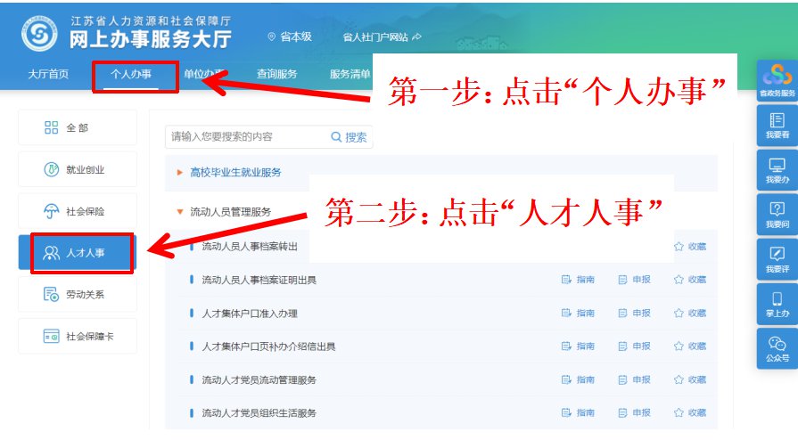 登录江苏人社网办大厅——点击个人办事——人才人事——流动人员管理服务——流动人员人事档案转出申报(填写须知:带*号的为必填项,转往单位地址需详细填写至门牌号)——点击右侧材料列表——在调档函处上传调档函——确认提交