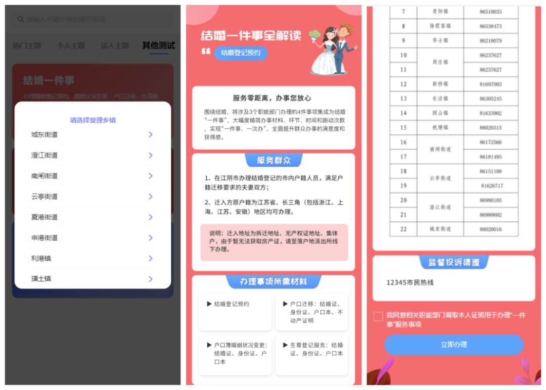 结婚“一件事” :结婚登记预约、户口簿婚姻状况变更、户口迁移、生育登记