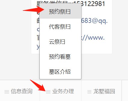 2.点击菜单栏“业务办理”—“预约祭扫”
