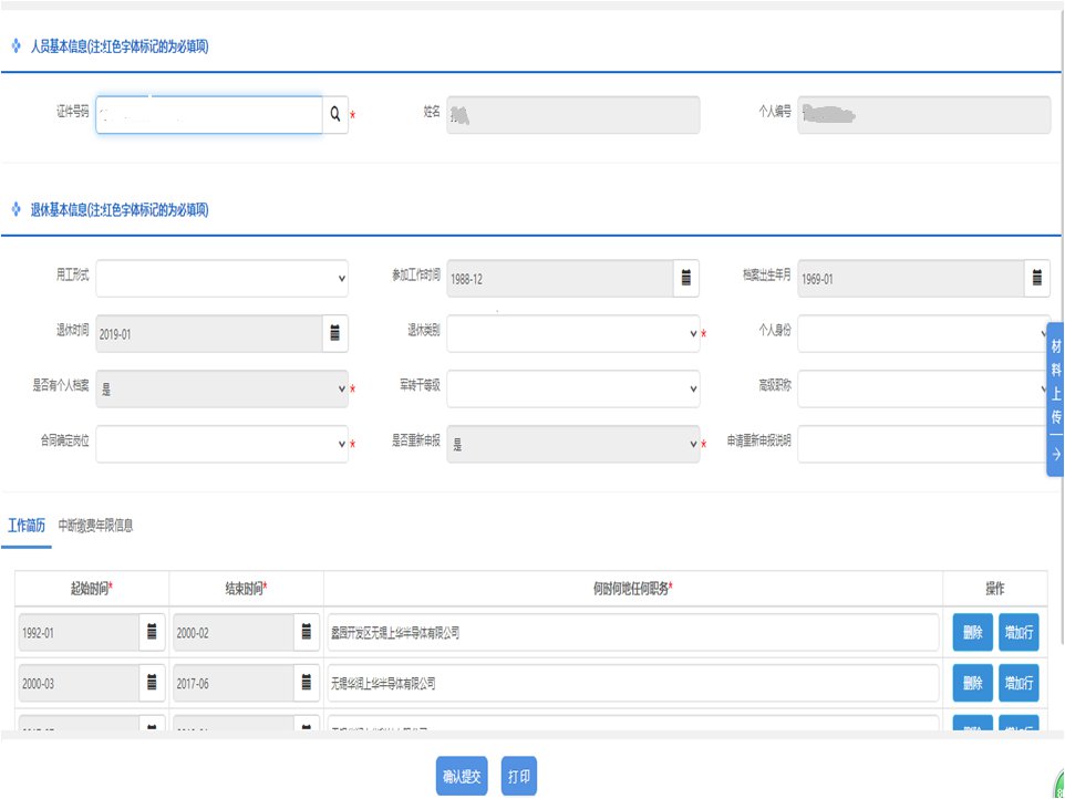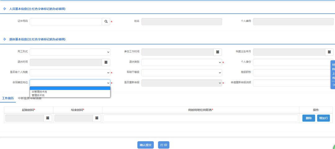 3、第三步:填写人员基本信息、退休基本信息等