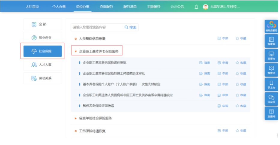 2、第二步:点击“社会保险”-“企业职工基本养老保险服务”,进入“企业职工基本养老保险退休审批”模块
