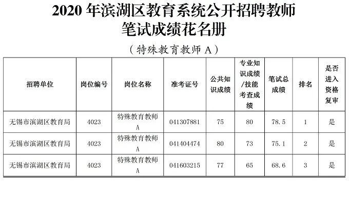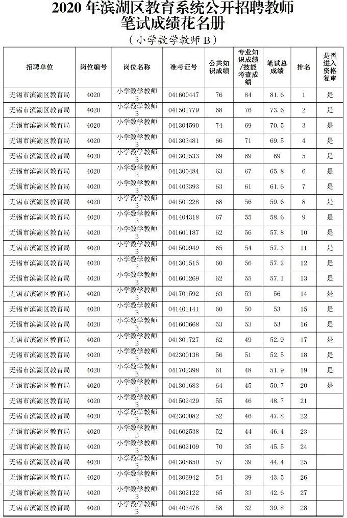 2020年滨湖区教育系统公开招聘教师资格复审公告