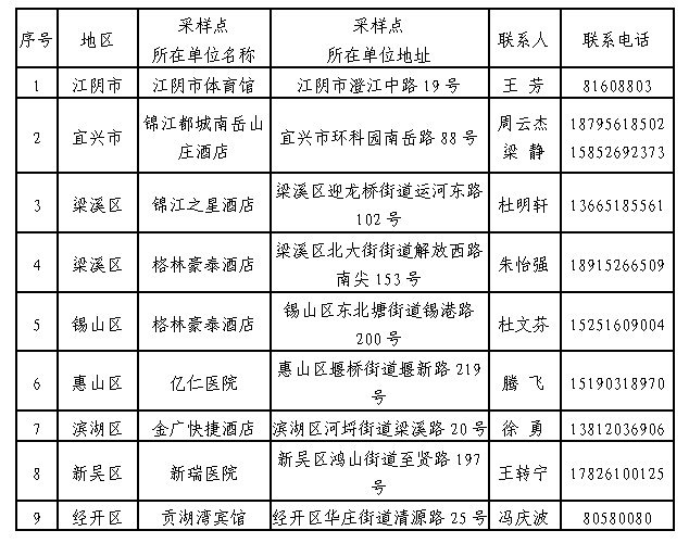 无锡市新冠病毒检测采样服务点名单