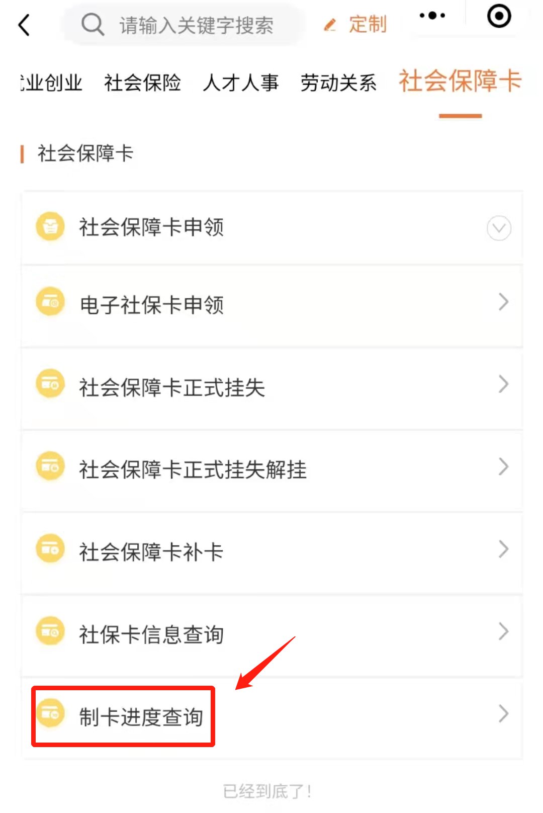 四、选择“全部”,找到“社会保障卡”,点击制卡进度查询选项即可