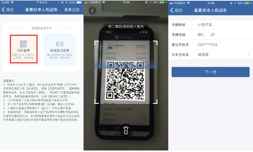 3、同一用户最多可以同时备案3辆(含3辆)非本人机动车;