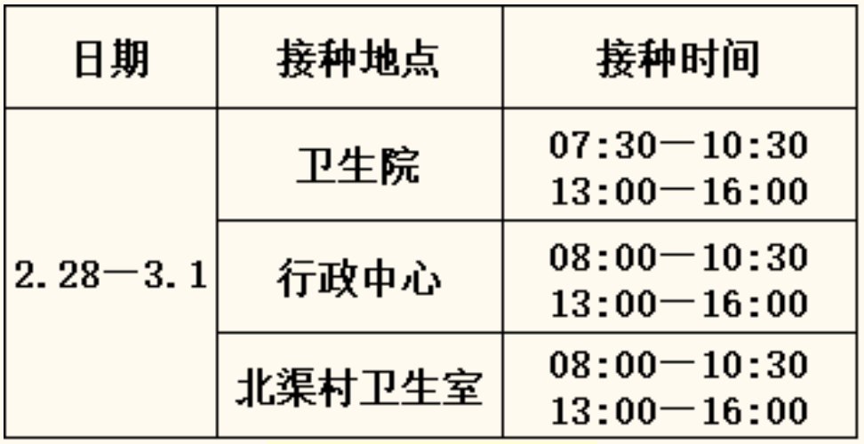2月28—3月1日,和桥镇新冠疫苗接种安排: