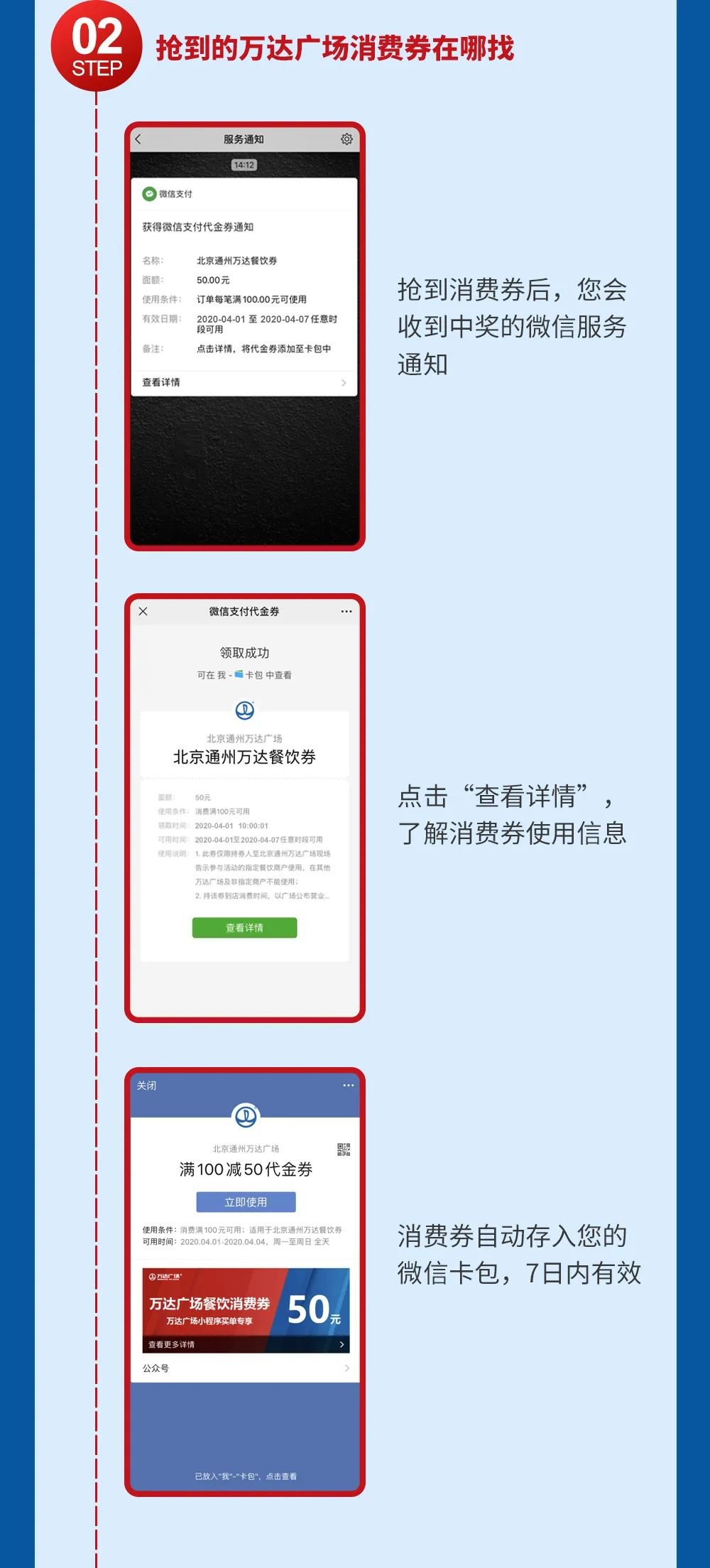 抢到的消费券将自动进入微信支付卡包,消费者在7个自然日内到万达广场参与活动商家都可以使用,线下支付结算时均可同时享受商家已有优惠折扣,并可叠加抵用万达广场消费券,通过万达广场小程序买单功能一键抵用,简单便捷易操作。所有抵用的消费券费用全部由万达商管集团承担。