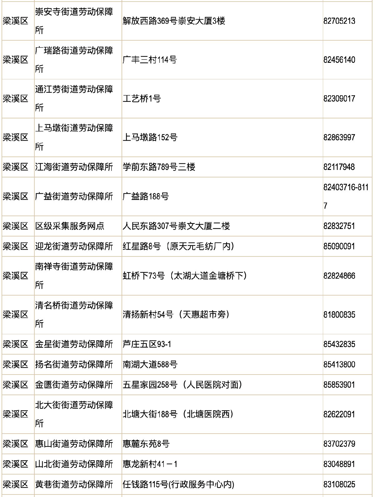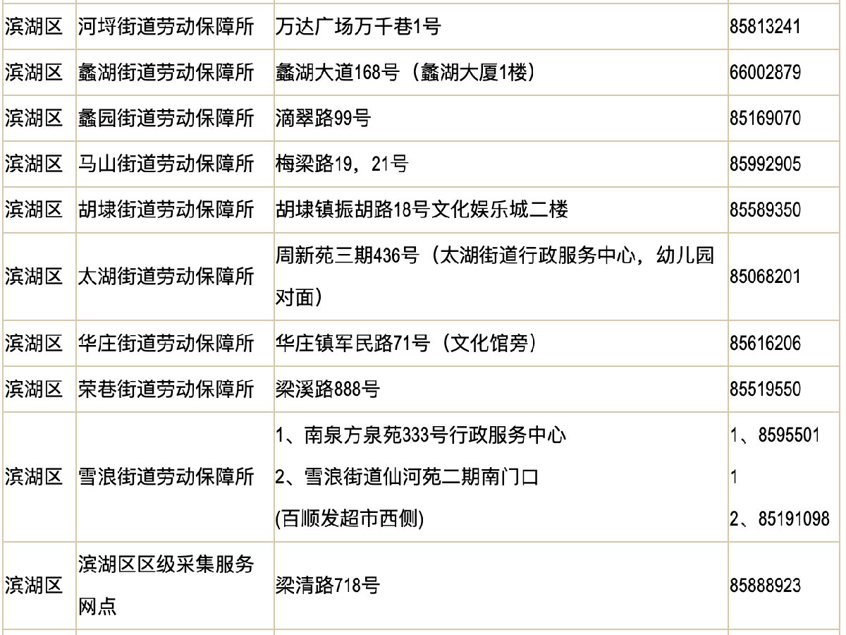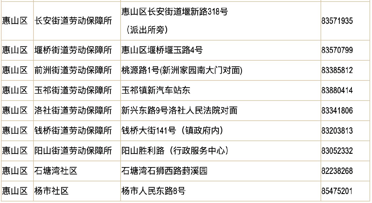 街道人社所地址一览: