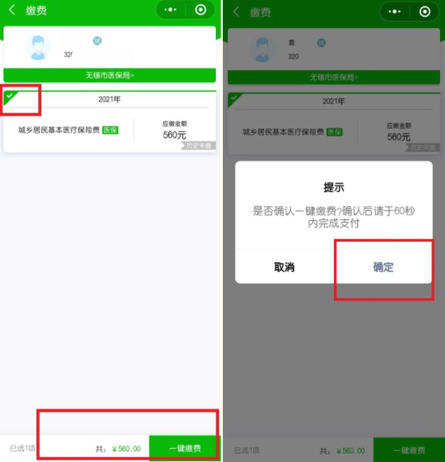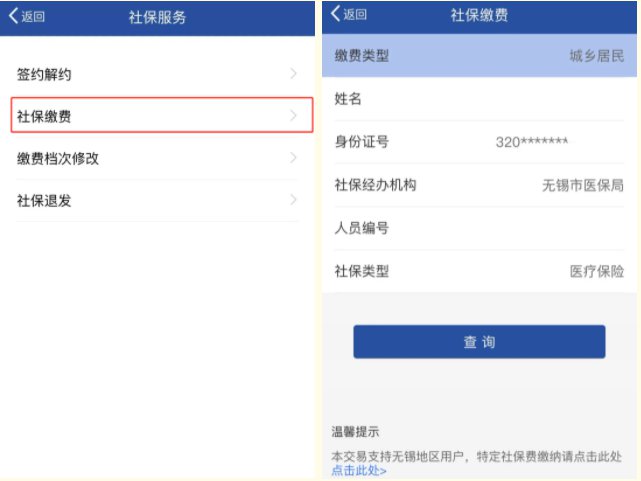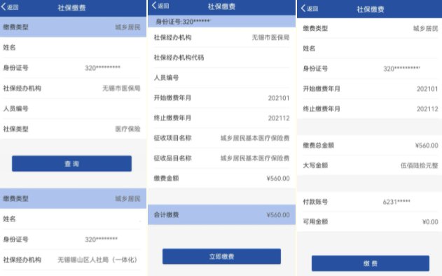 参保缴费人可凭有效身份证件到无锡农村商业银行、江苏银行、中国建设银行、中国邮政储蓄银行任意网点查询缴纳费款。
