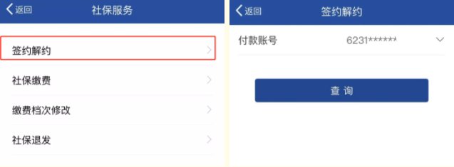 1. 登录无锡农村商业银行手机银行,点击【全部】,找到便民生活栏目,点击【社保缴费】→【签约解约】,校对付款账号后点击【查询】。