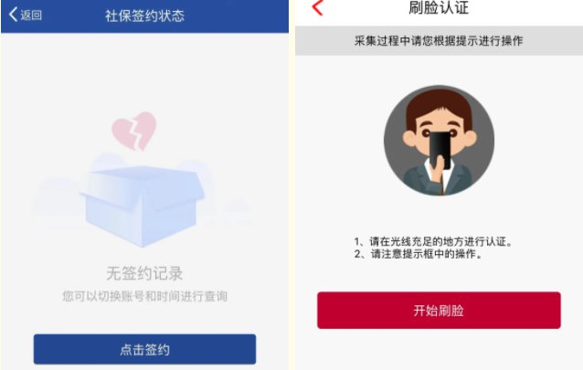 2.进入社保签约状态页面,点击【点击签约】,开始刷脸认证。
