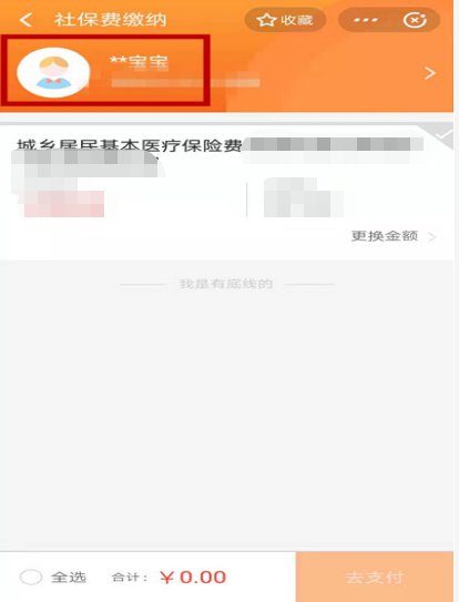 ①为本人缴费,点击本人头像,即可进入缴纳界面。