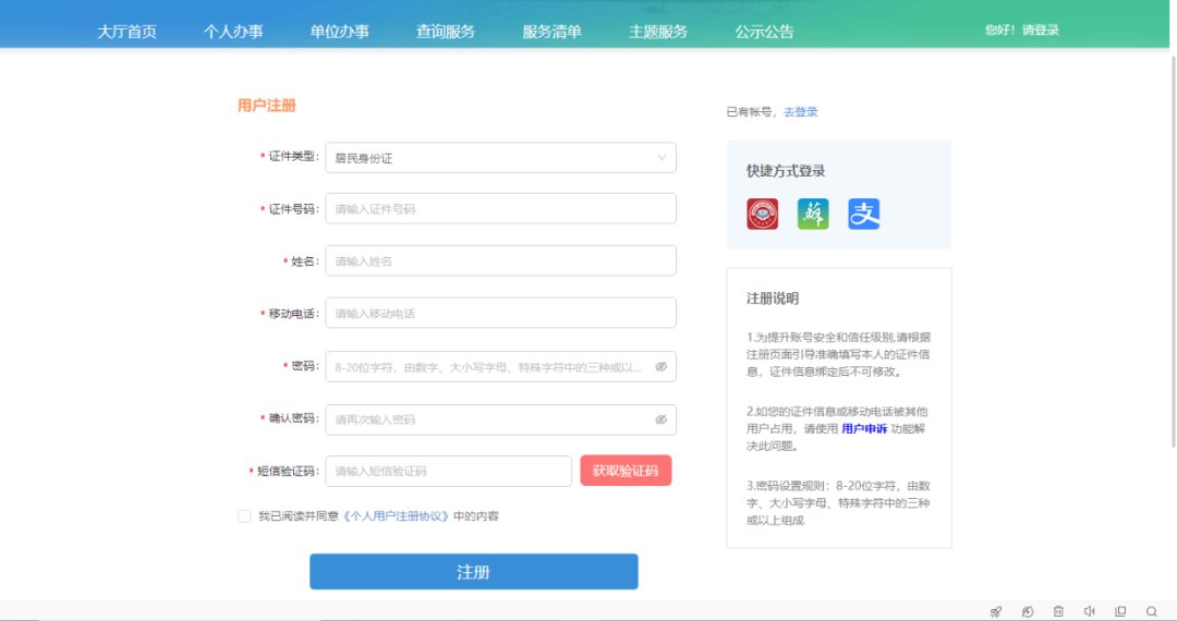 个人用户注册后方可在网上办事服务大厅和江苏智慧人社APP办理业务。
