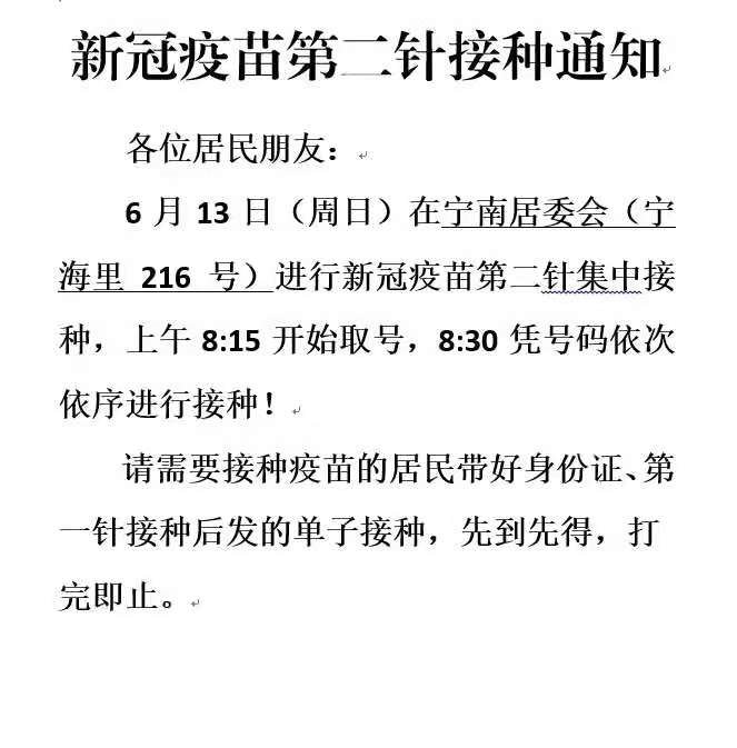 2.之前在范道流动点接种第一针的对象,我院会在端午节后有序安排到范道流动点开展第二针次接种工作!