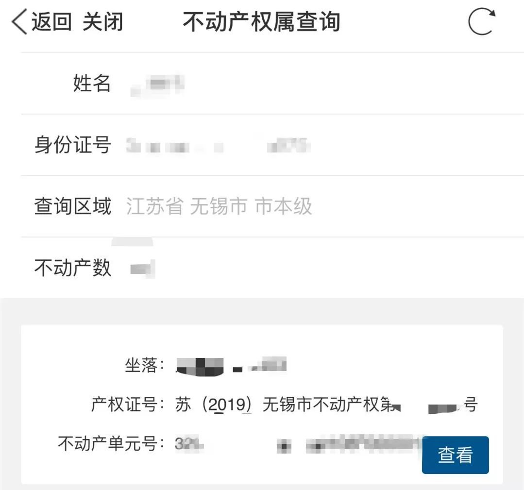 如果在无锡有房产,则显示查询结果示例如下: