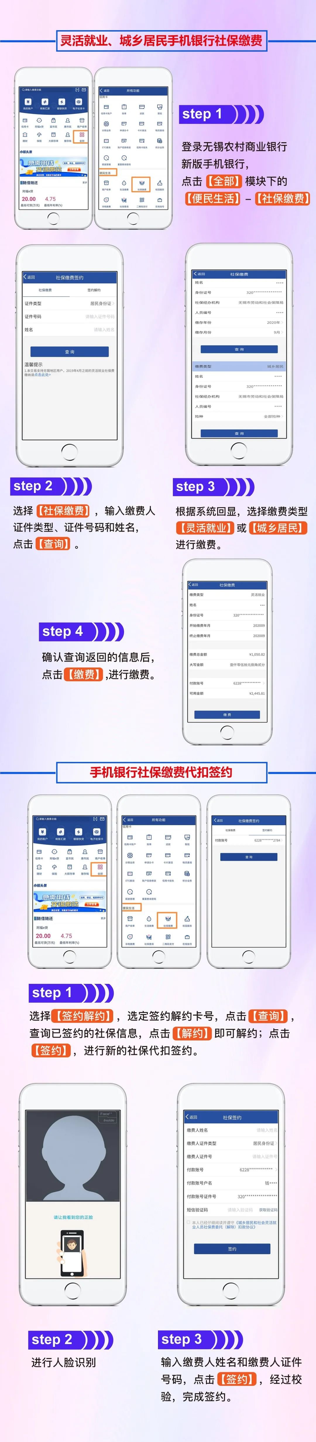 (2)未与银行签订扣款协议的缴费人,10月1日-12月31日期间,参保缴费人可凭有效身份证件到无锡农村商业银行、江苏银行、中国建设银行、中国邮政储蓄银行任意网点查询缴纳费款,或可通过无锡农商银行、江苏银行手机App缴纳费款。
