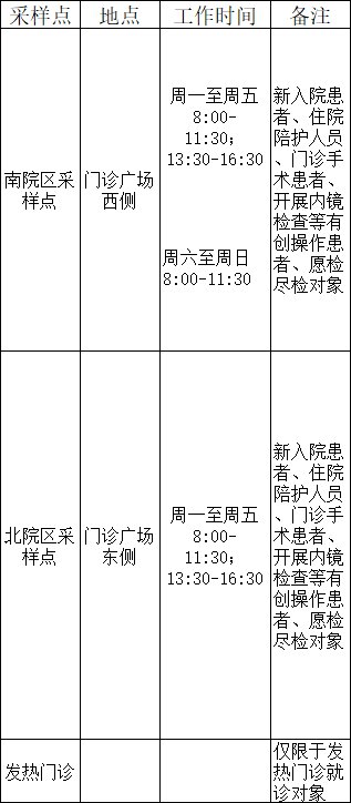 核酸采样地点及时间: