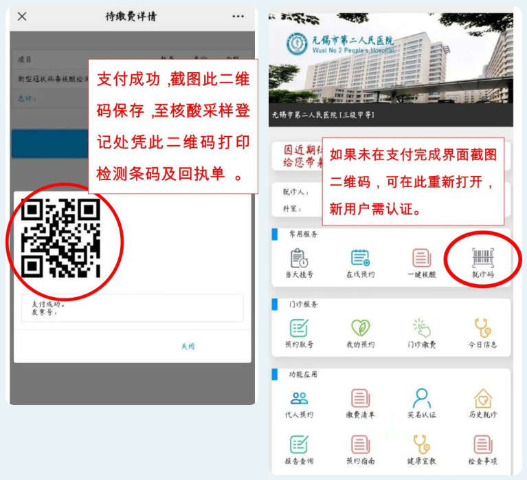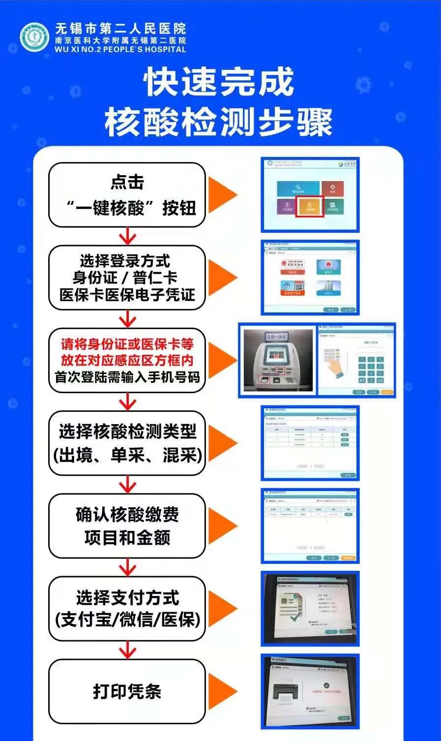 步骤一:关注“无锡市第二人民医院”公众号,步骤二:点击“一键核酸”