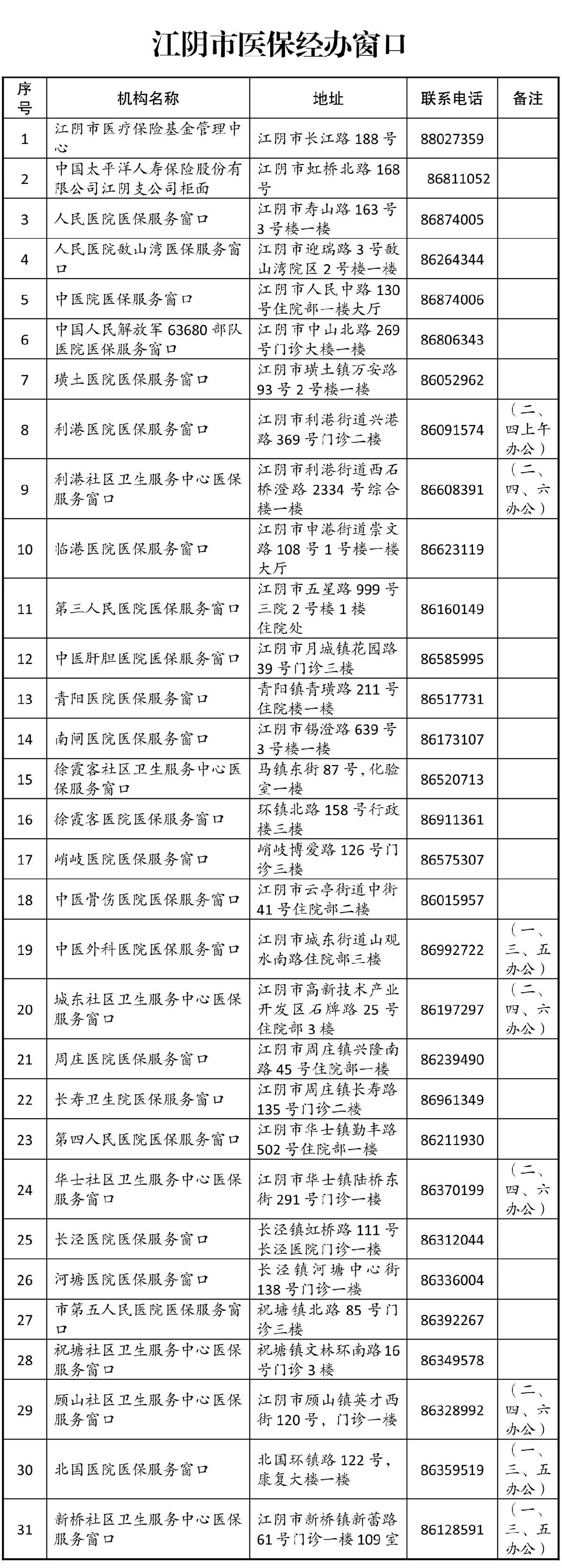 (二)如果遇到因网络故障等特殊原因无法联网结算的情况,也可以个人现金支付,而后凭社会保障卡、市外医院门诊病历、住院诊断证明、费用清单和住院发票,到江阴市内各定点医院的医保经办窗口(名单及地址附后)手工报销。手工报销需要在对应的医保结算年度之内(最多可以延后六个月)进行,逾期将不予受理。