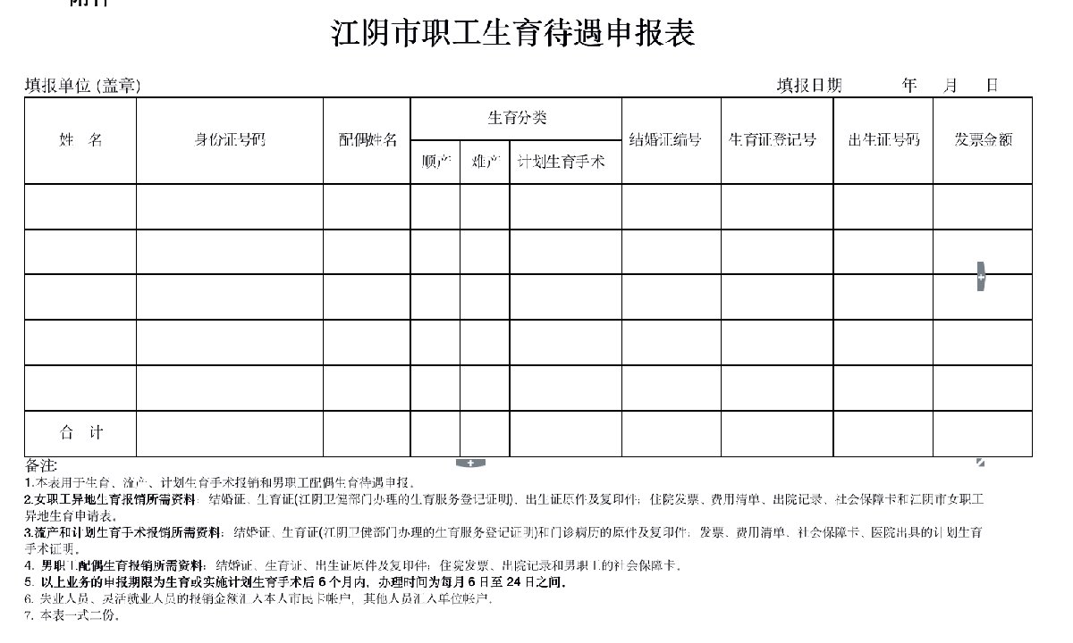 江阴市职工生育待遇申报表