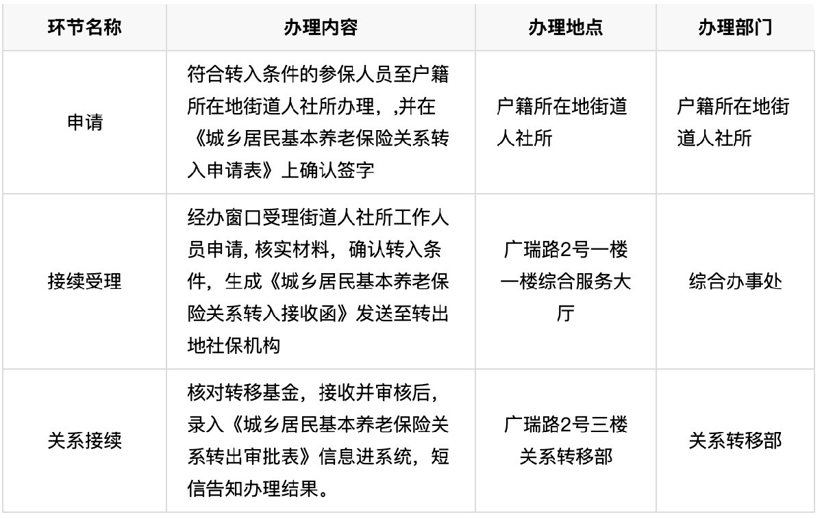 由户籍所在地街道人社所提供填写并签章好的《城乡居民基本养老保险关系转入申请表》。