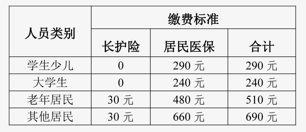 (四)本市户籍的其他居民,每人每年缴费690元(含个人缴纳长期护理保险费每人每年30元)。