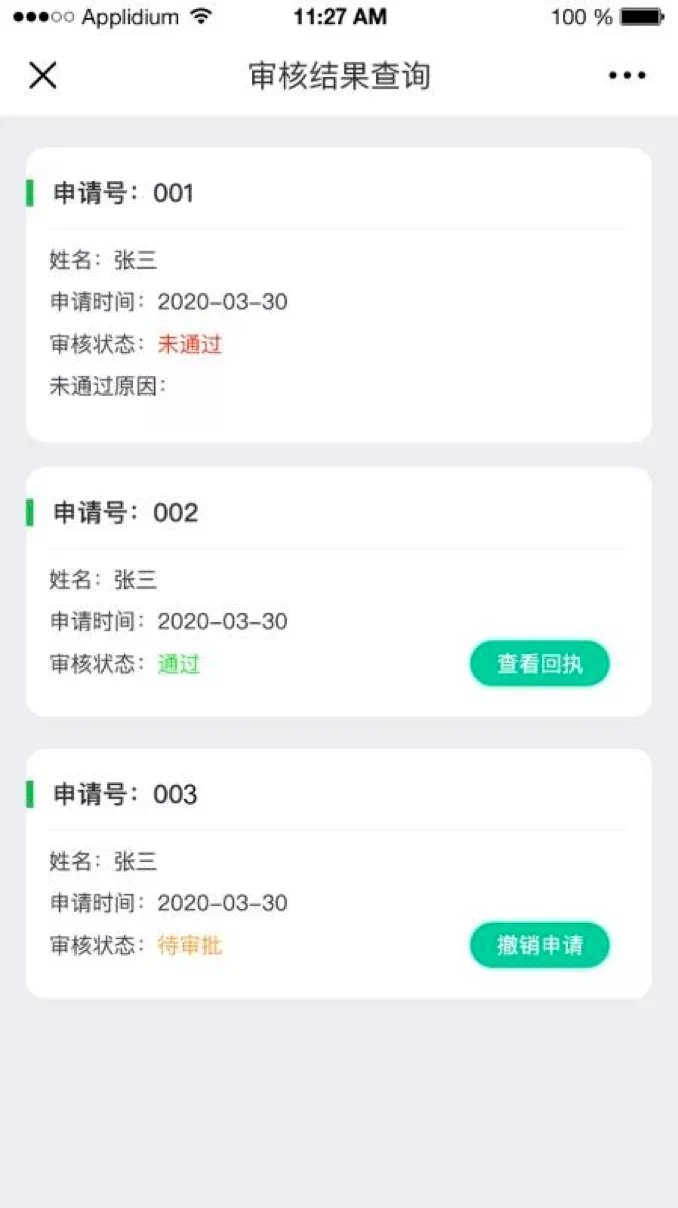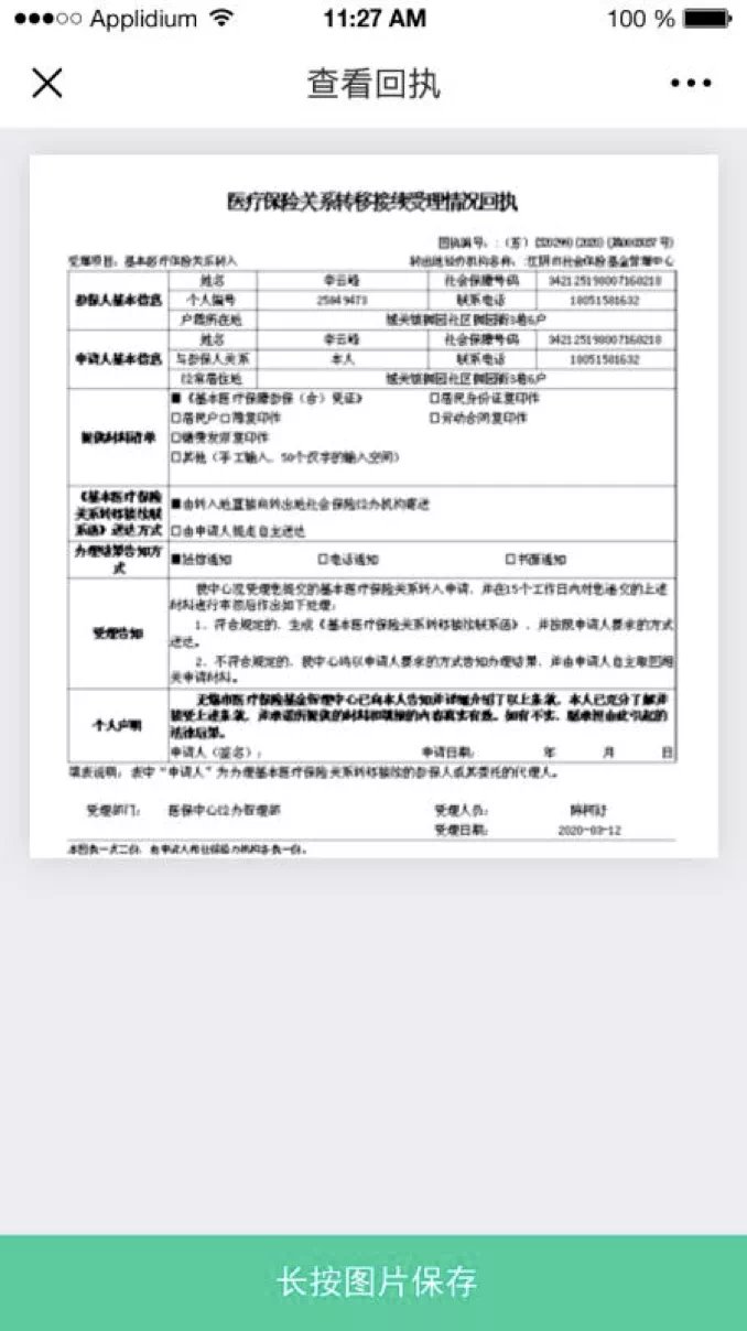 小编提醒:审批“通过的”,请仔细核对回执信息,长按图片,即可将回执图片保存至手机。