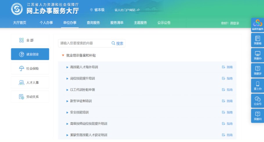 选择单位办事→就业创业→就业培训备案和补贴→就业技能培训