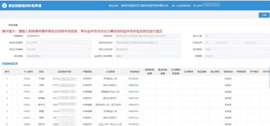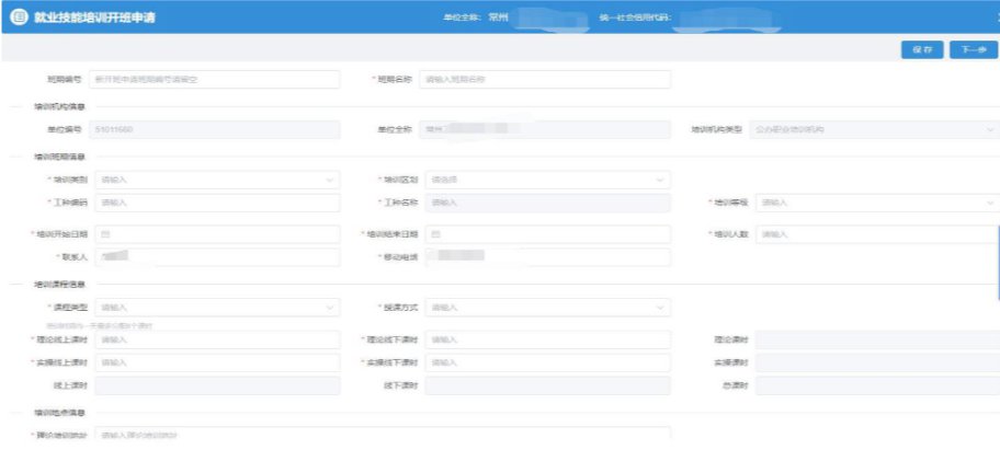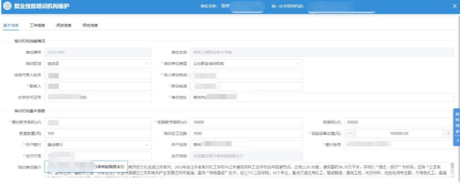 培训机构维护:填写基本信息、工种信息、师资信息、场地信息后确认提交,等待审核。