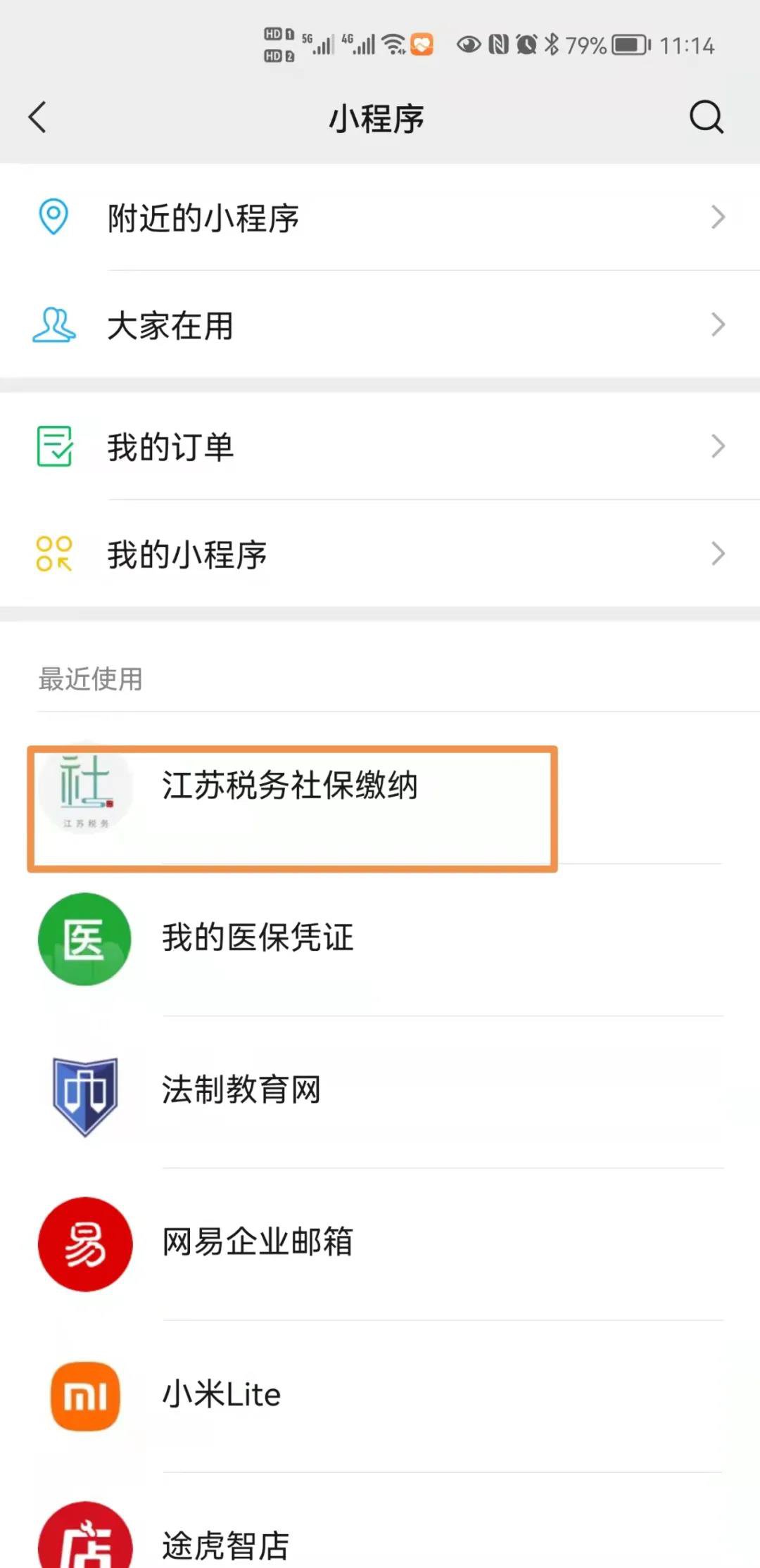 2.微信:发现-小程序-搜索江苏税务社保缴纳,即可通过小程序为自己或他人缴款。(优点:线上缴费,即时快捷)