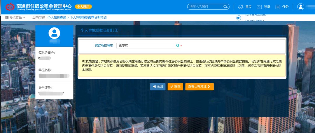 今后,在南通缴存公积金的职工,如需要在异地(南通行政区域外)购房申请异地公积金贷款,不需要到我中心柜面出具相关证明,可以自行在网上打印。