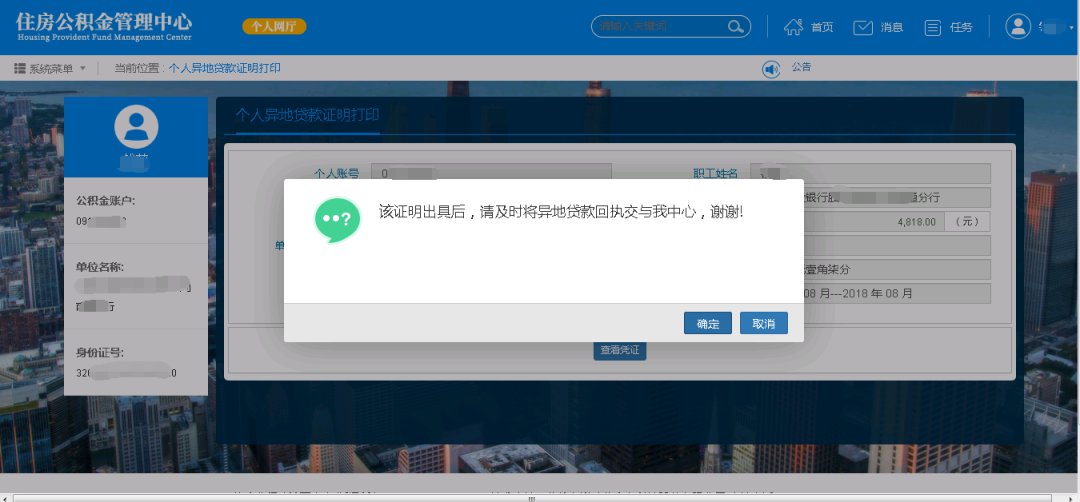 点击【个人异地贷款证明打印】后,会进入业务界面,如下图所示: