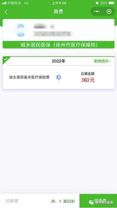 5.点击“缴费”或者“代人代缴”→选择缴费年度“2022年”缴费金额“360元”。