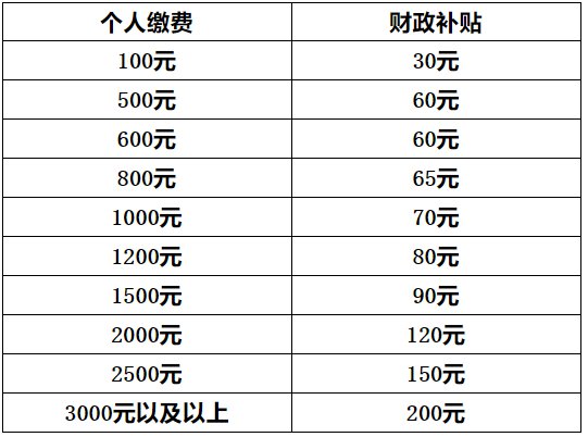 个人缴费标准目前设为每年100元、500元、至3000元及以上10个档次,其中100元的缴费档次,只适用于重度残疾人及建档立卡未标注脱贫的低收入户。最高缴费档次标准不超过当地灵活就业人员参加企业职工基本养老保险的年缴费额。财政补贴标准见下表。