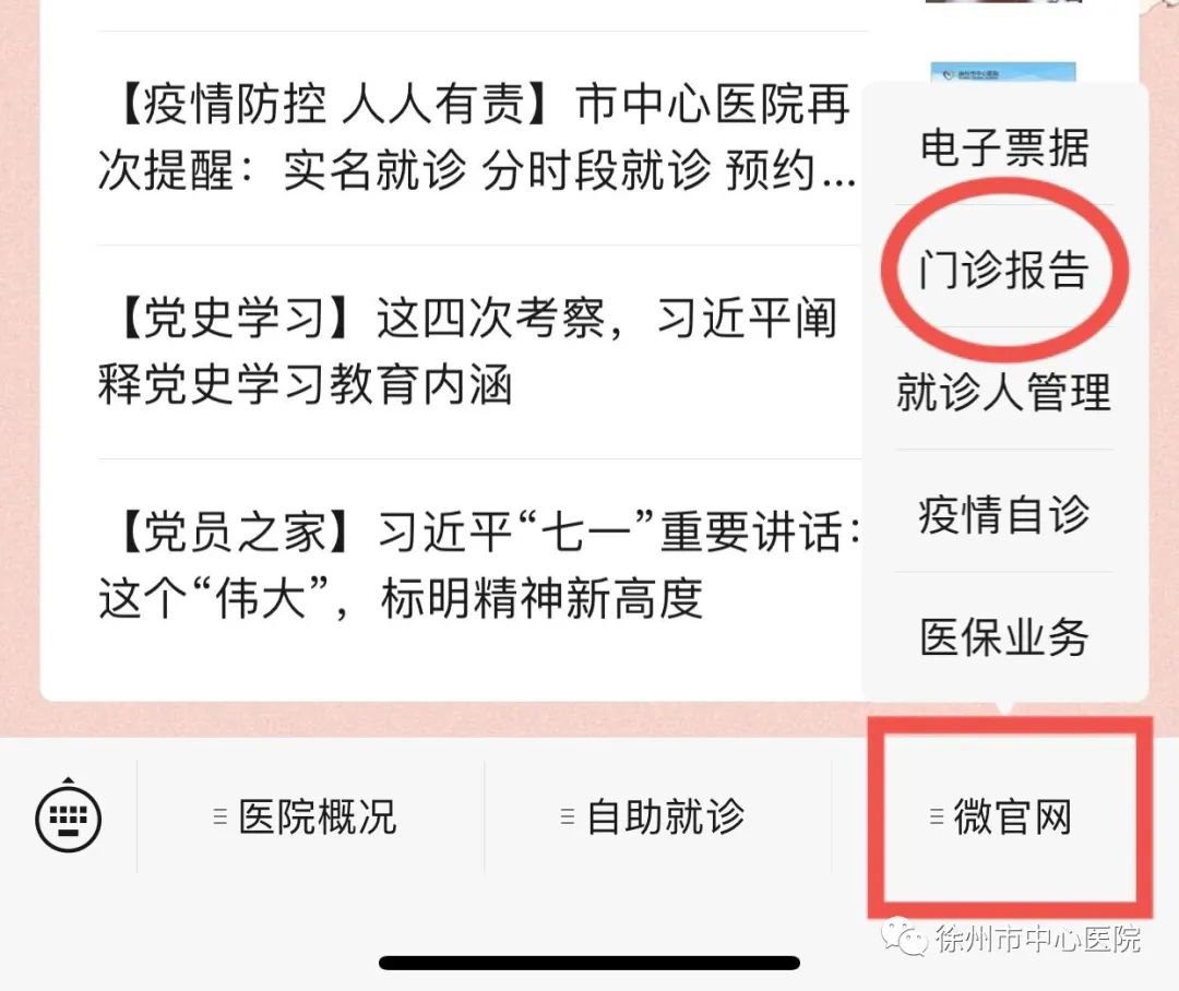 也可通过关注“徐州市中心医院”微信公众号网上查询检查结果哦~
