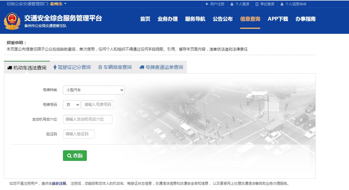 泰州违章查询官网:点击进入