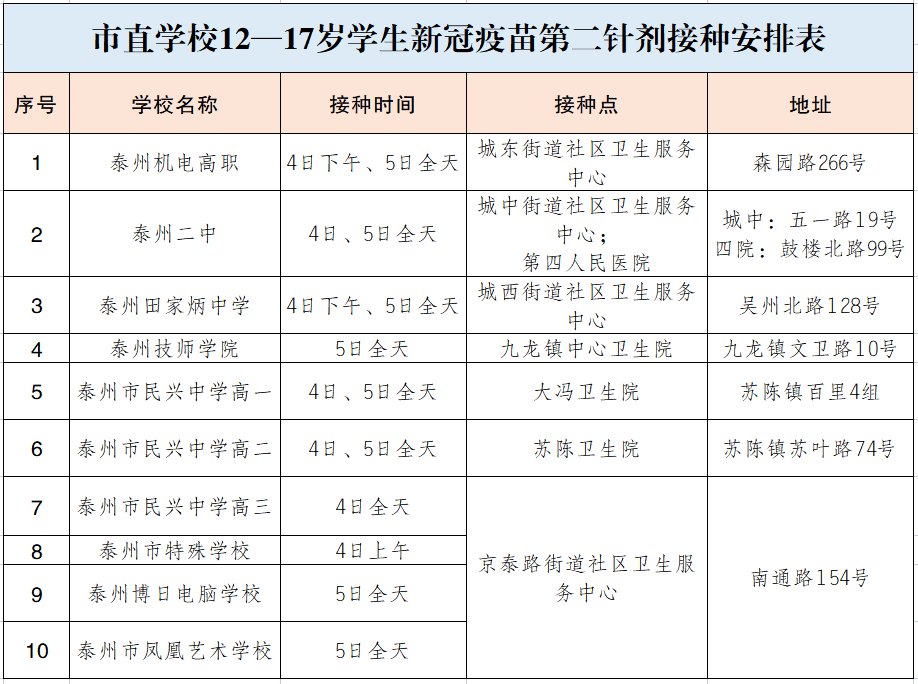 根据国家、省、市有关安排,海陵区即将启动12-17岁人群新冠疫苗第二针接种工作。