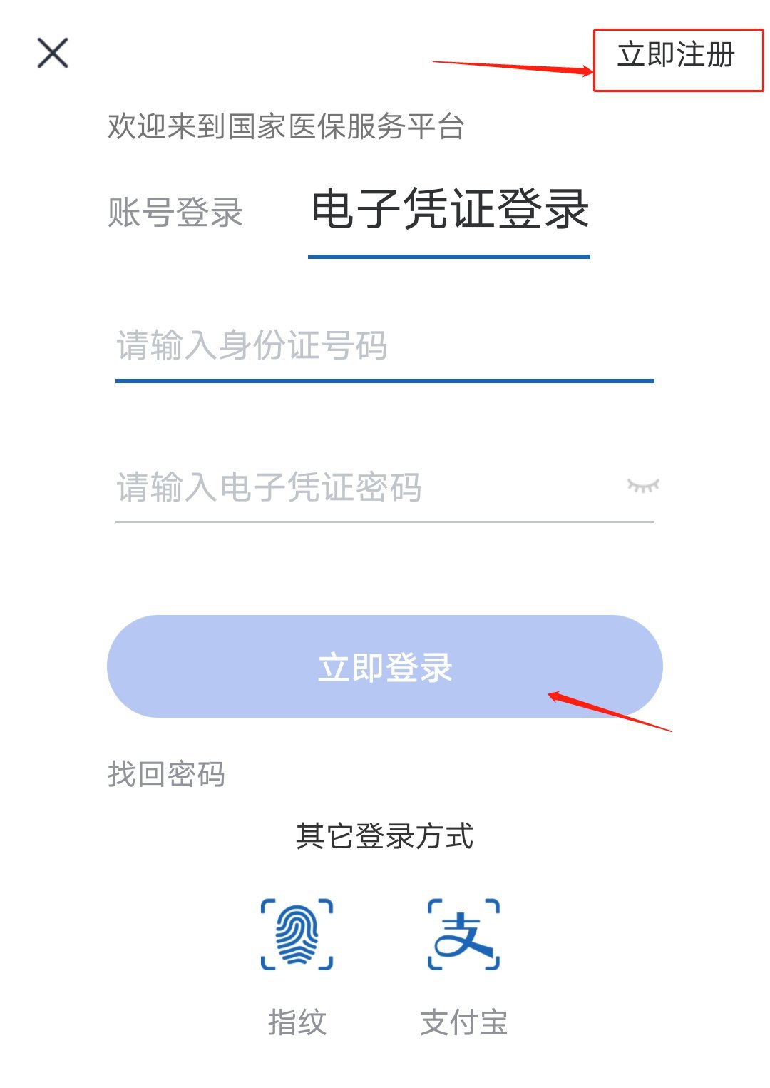 首次进入登录页面,有【账号登录】和【电子凭证登录】两种方式。