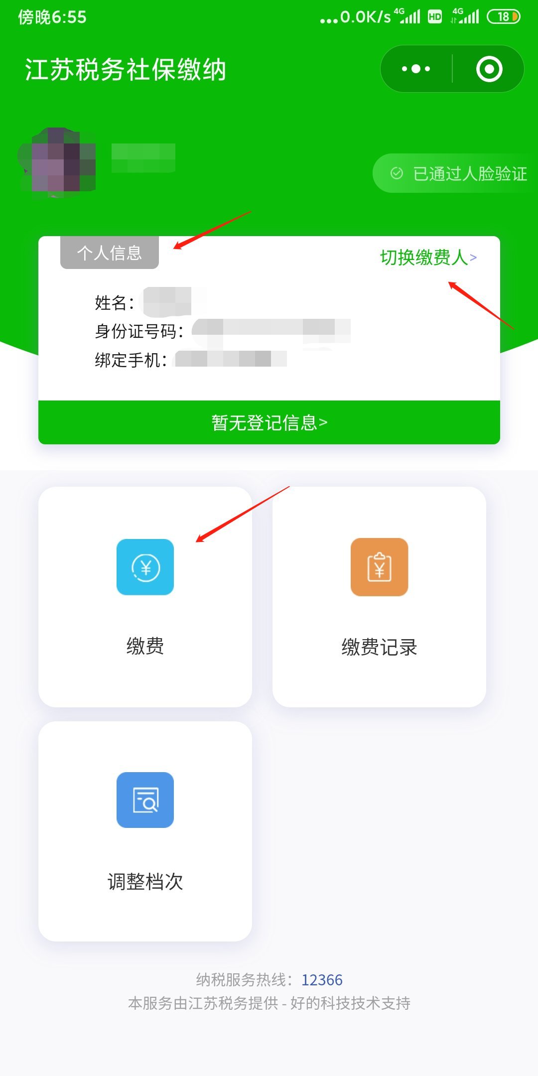 (5)点击“切换缴费人”,“添加他人身份信息”可切换至他人身份,为他人缴费。