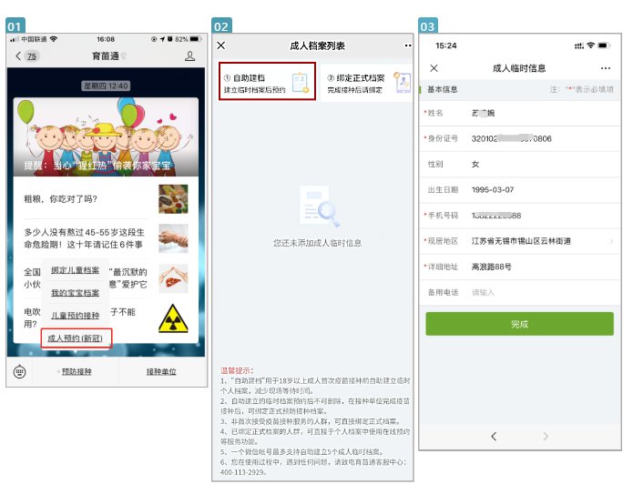 在公众号界面,点击【预防接种】——【成人预约(新冠)】,选择“1自助建档”输入相应信息后点击完成。