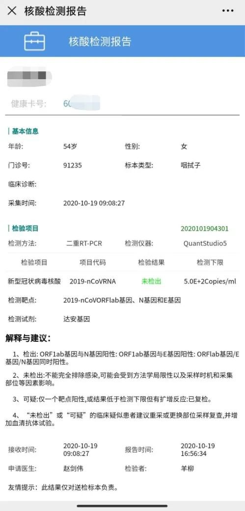 温馨提示:小程序查询服务目前只支持查询7天内的核酸检测结果!