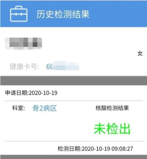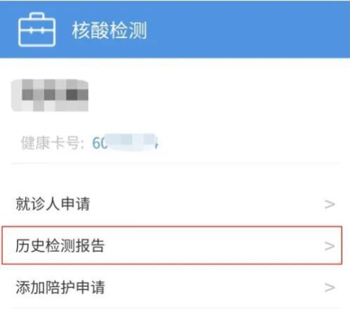 进入首页后,点击“核酸检测”——“历史核酸检测报告”,就可以直接在手机上查询到自己的核酸检测结果。