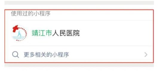 第一步:微信搜索框中直接搜索“靖江市人民医院”,点击进入靖江市人民医院微信小程序