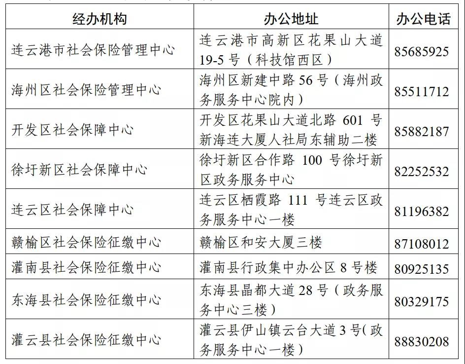 市、县(区)社保经办机构地址及办公电话:
